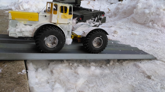 Mám podobnou zkušenost. Na druhým podvozku ŠT 180 jsem zvolil pro zatáčení stejnej systém. Jen místo táhel zase oz.kolo na oz.půlkolo. Servo je Hitec 5955, 24kg. První převod je 1:3-12/36z a druhej 1:1,38-36/50z. Pokoušel jsem se o to na prvním modelu, ale pak jsem zvolil hydr.zatáčení, druhej bude jen traktor bez hydrauliky, takže tohle zatáčení a písty jen atrapa.